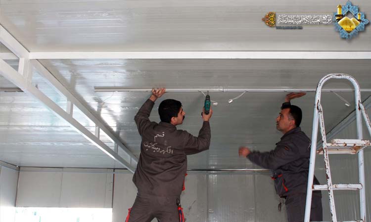 وأضاف قائلاً: تم مد شبكة أنابيب تسليك تحت الأرض ومد خطوط وأسلاك الإنارة فيها للإستغناء عن الأسلاك الموجودة على الأعمدة في باب فاطمة "عليها السلام" وباب المراد لإضفاء الجمالية على المكان وإزالة المناظر المشوهة له، ومن الأعمال الأخرى قمنا بإجراء التأسيسات الكهربائية وأعمال الصيانة في دور العتبة إستعداداً للمناسبة ومواقع متعددة أخرى منها شارع صاحب الزمان "عجل الله فرجه الشريف" الأمانات الخارجية والحمامات الصحية المتنقلة, تأسيس مصادر للطاقة الكهربائية في برادات اللحوم ومحطات تصفية المياه (RO).