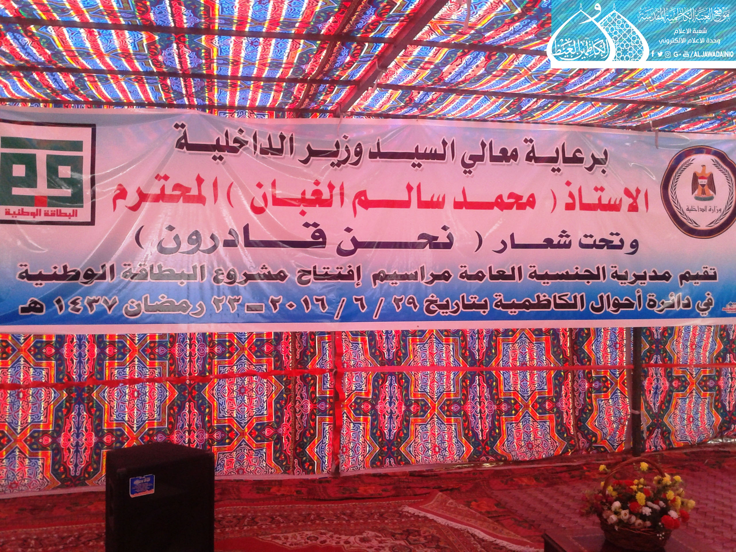 شارك الأمين العام للعتبة الكاظمية المقدسة أ.د. جمال عبد الرسول الدباغ في مراسم افتتاح مشروع البطاقة الوطنية الموحدة في دائرة أحوال الكاظمية التي أقيمت تحت شعار : (نحن قادرون) بحضور السيد وزير الداخلية وعدد من السادة المسؤولين والذي سيقدم الخدمات لنحو مليون مواطن من سكنة مدن الكاظمية والشعلة والعطيفية والحرية.
