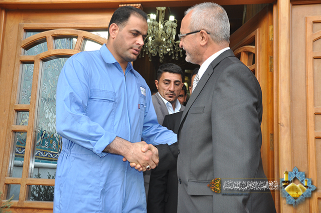 تشرف محافظ بغداد الاستاذ(علي التميمي ) والوفد المرافق له بزيارة الامامين موسى بن جعفر ومحمد بن علي الجواد(ع), وبعد اداء مراسم الزيارة والدعاء, توجه الى مقر ادارة العتبة المقدسة حيث كان في استقباله الأمين العام للعتبة الكاظمية المقدسة الدكتور(جمال الدباغ) بكل حفاوة وترحيب, وجرى الحديث مع الوفد الضيف خلال اللقاء حول اهم الجوانب الخدمية التي يمكن تقديمها لزائري الامامين الجوادين(ع) .