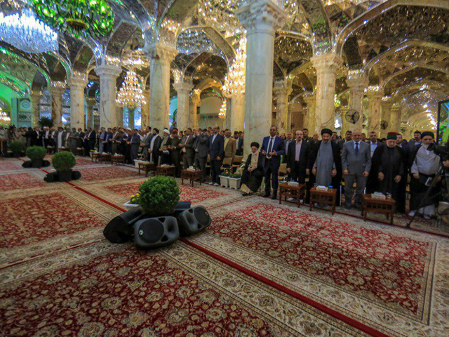 الأمين العام للعتبة الكاظمية المقدسة يلبّي دعوة حضور حفل ولادة أمير المؤمنين في العتبة العلوية المقدسة