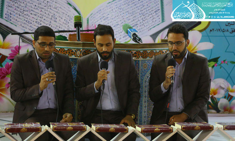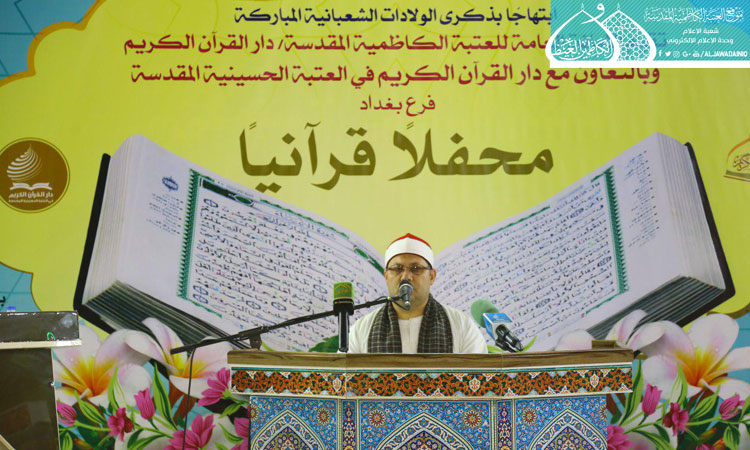 احتفاءً بولادة أقمار الهداية وأنوار الولاية التي بزغت في شهر شعبان الخير، أقامت الأمانة العامة للعتبة الكاظمية المقدسة/ قسم الشؤون الفكرية والإعلام ـ دار القرآن الكريم وبالتعاون مع دار القرآن الكريم في العتبة الحسينية المقدسة، محفلاً قرآنياً يوم الأثنين 11 شعبان 1438هـ ، إذ شهد استضافة القارئين الدوليين من جمهورية مصر العربية الشيخ سيد سعيد والشيخ أحمد عبد الحي ومشاركة قارئ العتبة الكاظمية المقدسة الحاج همام عدنان، بحضور عدد من أعضاء مجلس الإدارة وممثلي المؤسسات القرآنية في بغداد ومجموعة من الأساتذة المختصين والمهتمين بالشأن القرآني وجمع غفير من الزائرين الكرام، وتخلل المحفل على تلاوات مباركة صدحت بها حناجر القراء خاشعة شنّفت أسماع الحاضرين بآيات الذكر الحكيم، أجادوا بها ليؤكدوا من خلالها الأهمية البالغة للقران الكريم وضرورة الاهتمام به باعتباره المصدر الرئيس لديننا الحنيف، كما إزدان المحفل بمشاركة فرقة إنشاد الجوادين بقراءة الابتهالات الدينية.