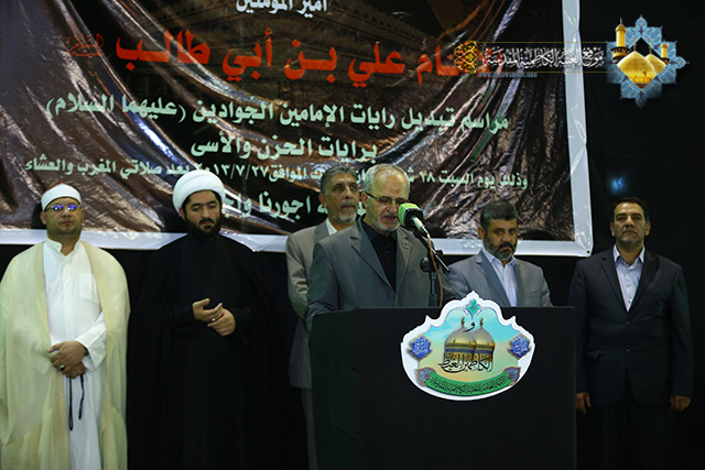 استبدال رايتي الامامين الجوادين(ع) بمناسبة ذكرى استشهاد أمير المؤمنين علي بن ابي طالب -ع