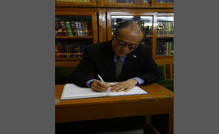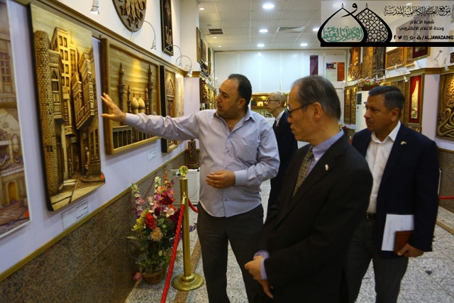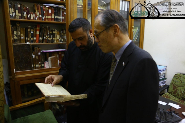 تشرف سفير اليابان في العراق السيد (فوميو آيواي)، والوفد المرافق له بزيارة الإمامين الجوادين "عليهما السلام", وتم استقباله من قبل الأمين العام للعتبة الكاظمية المقدسة الأستاذ الدكتور جمال عبد الرسول الدباغ وعدد من السادة أعضاء مجلس الإدارة بكل حفاوة وترحيب, وأعرب الوفد الضيف عن بالغ سروره وتشرفه بهذه الزيارة، من جانبه قدم الأمين العام للعتبة الكاظمية المقدسة نبذة مختصرة عن تاريخ الصحن الكاظمي الشريف، بعدها قام الوفد بجولة ميدانية في مفاصل العتبة المقدسة وزيارة مكتبة الجوادين العامة ومعرض النقش والزخرفة، اطلع خلالها على المعالم الأثرية والتاريخية والعمارة الإسلامية والتطور العمراني والخدمي الحاصل في صحن الشريف، حيث أبدى السفير الياباني إعجابه البالغ بما تتمتع به العتبة الكاظمية المقدسة من أجواء روحانية وإيمانية، والطابع الفني والحضاري الذي يتجسد فيه العمق والامتداد الذي يربط الماضي بالحاضر.