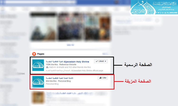نفت الأمانة العامة للعتبة الكاظمية المقدسة وجود أية صفحة أو حساب يتحدث باسمها عبر مواقع التواصل الاجتماعي الـ(facebook)، بالرابط الآتي: رابط الصفحة المزيفة