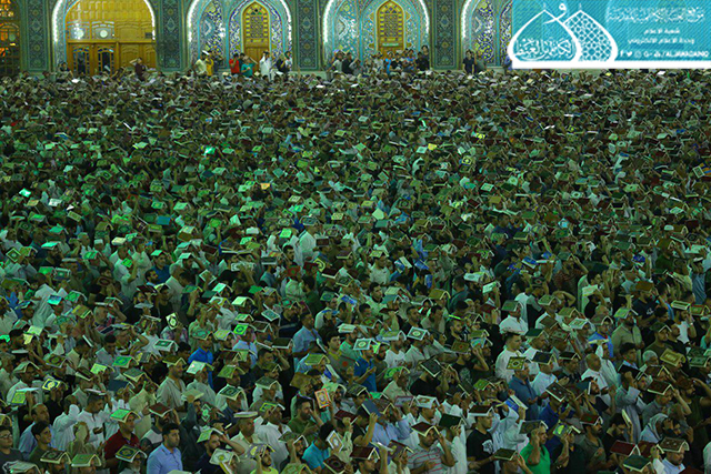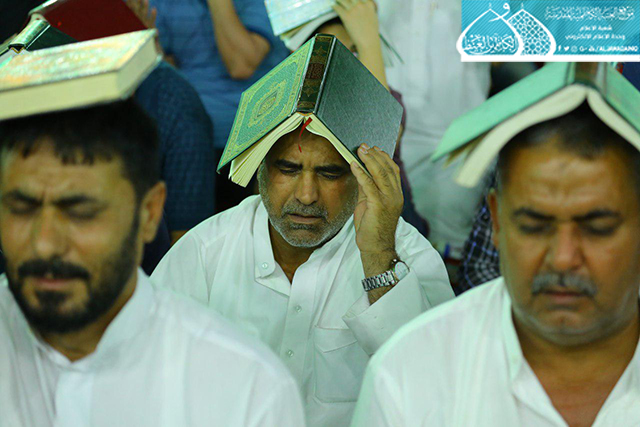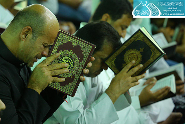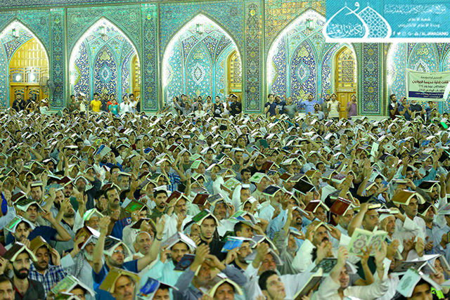 ثم تلا ذلك قراءة الأدعية الواردة عن الرسول الأكرم وأهل بيته الأطهار "عليهم السلام" في إحياء هذه الليلة من صلاة ودعاء رفع المصاحف وقراءة دعاء الجوشن الكبير، مبتهلين إلى الله تعالى بتعجيل فرج مولانا صاحب العصر والزمان "عجل الله فرجه الشريف"، وأن يعم الأمن والآمان على بلدنا العزيز ويسوده الخير والرخاء.