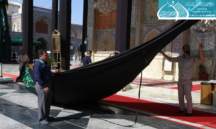 اتَّشحت العتبة الكاظمية المقدسة بمظاهر الحزن والأسى إيذاناً لاستقبال الذكرى الأليمة لاستشهاد المؤتمن على الشرع المُبين والمدافع عن عقيدة سيد المرسلين "صلّى الله عليه وآله" الإمام جعفر بن محمد الصادق"عليه السلام"، حيث تم نشر السواد والكلمات النورانية على الضريح الشريف للإمامين الجوادين "عليهما السلام" وأعمدة الطارمات والأواوين للحرم المطهر.