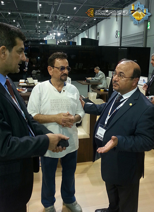 واستعرض الفنان النقاش أعماله الفنية التي جسدت الأقوال المأثورة لأهل البيت (ع)، موضحاً للحضور إن هذه الأقوال قد نقشت في قلبه قبل أن تنقش على الخشب، وأصبحت منهاجاً مباركاً في حياته، كما أبدى ارتياحه للفرصة التي أتيحت له لتعليم مجموعة من الفتية والشباب فن النحت والنقش على الخشب في المركز المشار إليه، وذلك من خلال الدورة التدريبية التي أقيمت في هذا المركز، ودار خلال هذا اللقاء حوار جميل أجاب خلاله على جملة من الأسئلة التي وجهت إليه. وفي ختام اللقاء توجه الفنان النقاش بالشكر الجزيل والعرفان والامتنان للحضور المبارك، على حسن الاستقبال والضيافة، مبدياً إعجابه لما لمسه من محبة وتماسك وتعاون بين أبناء الجالية العراقية الكريمة، وتمسكهم بالشعائر الدينية والعادات والتقاليد العراقية الأصيلة، وإصرارهم على تعليم أبنائهم اللغة العربية والقرآن الكريم، كما قدم شكره وامتنانه الوافر لجميع من ساهم في إنجاح هذه المشاركة وتهيئة الفرصة المباركة. من جانبه توجه القنصل العراقي الدكتور (إحسان علاوي حسين) بالشكر والامتنان للعتبة الكاظمية المقدسة، وللفنان المبدع الأستاذ (إبراهيم النقاش) ودعواته له بالتوفيق للمشاركة في معارض عالمية أخرى.