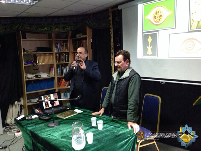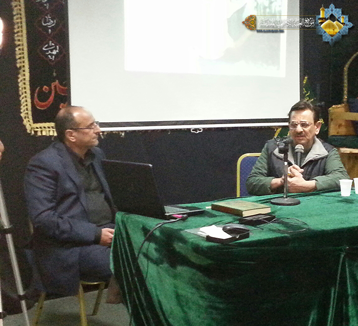 من جانبه ألقى الفنان النقاش كلمة في جلسة للحوار عقدها المركز باستضافة السيد القنصل، نقل في مستهلها تحيات خدمة العتبة الكاظمية المقدسة الى أبناء الجالية العراقية الكرام، ودعواتهم لهم بالخير والصلاح، ثم تحدث عن تجربته المباركة في العتبة المقدسة التي كان من أهمها وأعظمها شرفاً ترميم الصندوقين الخشبيين لضريحي الإمامين الجوادين(ع) قائلاً:( كان تكريم وشرف عظيم من الله سبحانه وتعالى أن أحظى بهذا العمل المبارك الذي كان الخطوة الأولى لتأسيس شعبة النقش والزخرفة في العتبة الكاظمية المقدسة، حيث استطاعت هذا الورشة الفنية الفتية من تدريب كوادرها الشابة الواعدة، وتأهيلهم للقيام بأعمال فنية مختلفة نالت إعجاب واهتمام الكثير، وكانت محط أنظار الزائرين من رجال الدين والفكر والسياسة ومختلف طبقات المجتمع، والوفود العربية والأجنبية من مختلف أنحاء العالم، وأنا فخور بهذه الطاقات الإبداعية وأعمالهم الفنية الرائعة، ومن المؤمل إن تكون هذه الشعبة النواة الأولى لمشروع متحف العتبة الكاظمية المقدسة )، كما أعرب النقاش عن مشاعره وأحاسيسه المفعمة بالحب والعطاء والجمال، الذي عكسته لوحاته الرائعة مؤكداً على مقولته المشهورة: (الحب أساس البناء الصحيح )، ومقولة ابن الكاظمية البار العلامة الراحل الدكتور حسين علي محفوظ :(الحب أجمل ما نعطي وأجمل ما نأخذ).