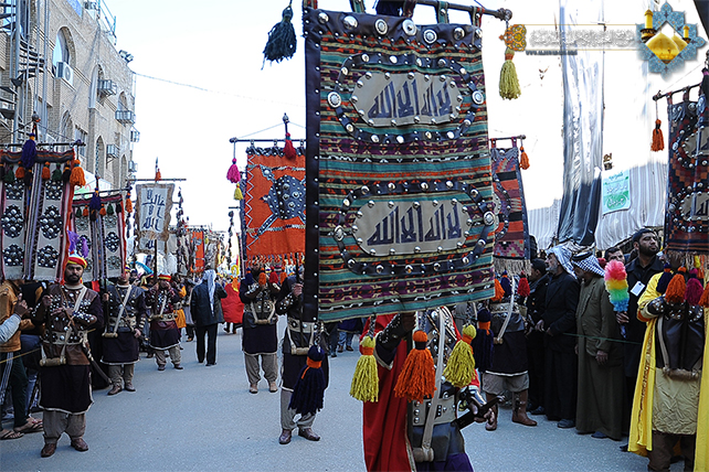 انطلقت في كربلاء المقدسة مسيرة ضعن السبايا السنوية التي تقيمها مواكب مدينة الكاظمية المقدسة ضمن الشعائر الحسينية في ذكرى أربعينية أبي الأحرار الإمام الحسين(عليه السلام)، وشارك خَدَمَة الإمامين الجوادين(عليهما السلام) في هذه المسيرة مواساةً لآل بيت رسول الله و لإمامنا زين العابدين علي بن الحسين وعمته عقيلة الطالبين زينب بنت علي(عليهم السلام) استذكاراً لقدوم ركب السبايا من الشام الى أرض الشهادة والتضحية والفداء, مجددين العهد لأبيّ الضيم الإمام الحسين (عليه السلام ) للمضي على نهجه الرسالي القويم مستلهمين دروس التضحية والإباء من سيرته المباركة في دفاعه عن رسالة جده المصطفى(صلى الله عليه وآله) ومبادئ الدين الإسلامي الحنيف، حيث انطلقت المسيرة الإيمانية من بداية الشارع المؤدي لباب قبلة صحن الإمام الحسين(عليه السلام) متجهة صوب منطقة ما بين الحرمين وصولاً إلى صحن المولى أبي الفضل العباس(عليه السلام)، حيث صدحت حناجر المشاركين بهتاف (لبيك ياحسين) الذي فجر المآقي وأدمى القلوب وأحزن النفوس .