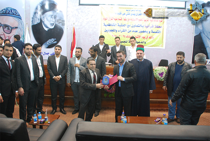في إطار سعي الأمانة العامة للعتبة الكاظمية المقدسة لتفعيل روابط التواصل القرآني، ومساهمة منها في نشر الثقافة القرآنية من خلال تعاونها وتواصلها مع النشاطات الجامعية ، لأجل تنمية ورعاية وتأهيل وتشجيع قدرات طلبتنا الأعزاء لتفتخر بهم في المحافل القرآنية المحلية والدولية، باعتبار أن الثقافة القرآنية جزء من عقيدتنا وتاريخ مجتمعنا الإسلامي، وتؤكد في الوقت ذاته على الأهمية البالغة للقرآن الكريم وضرورة الاهتمام به لأنه مصدر ديننا الحنيف، شارك خَدَمَة الإمامين الجوادين(عليهما السلام) في قسم الشؤون الفكرية/ دار القرآن الكريم في المحفل القرآني الذي أقامته عمادة كلية التربية للعلوم الإنسانية(ابن الرشد)/ قسم علوم القرآن الكريم، يوم الأثنين 24/2/2014، وتليت خلاله باقة من التلاوات القرآنية لنخبة من طلبة الكلية كانت من بينها مشاركة قارئ العتبة المقدسة (سجاد أحمد)، كما تضمن المحفل فعاليات جميلة لفرقة الجوادين الإنشادية صدحت حناجرهم بأداء مجموعة من الأناشيد والموشحات والابتهالات الإسلامية، وكان مِسك الختام توزيع هدايا العتبة الكاظمية المقدسة على الطلبة المشاركين، كما قدمت عمادة كلية التربية درعاً إلى الأمانة العامة للعتبة الكاظمية المقدسة تقديراً لجهودها المباركة ورعايتها للنشاطات القرآنية .
