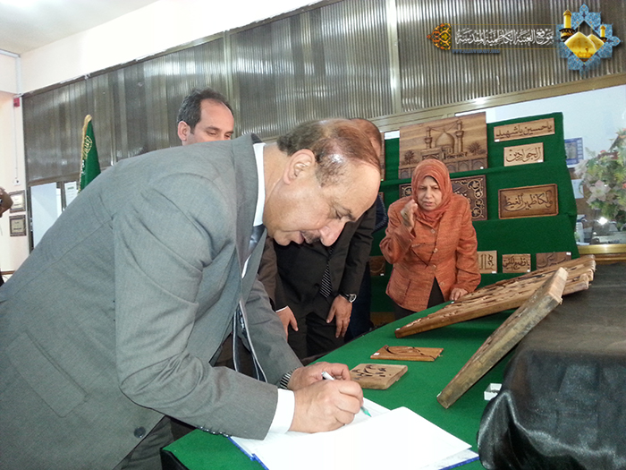 أقامت جامعة واسط معرضاً للكتاب بالتعاون مع الأمانة العامة للعتبة الكاظمية المقدسة بمناسبة الذكرى الحادية عشر لتأسيس الجامعة، في قاعة المكتبة المركزية للفترة من من4ـ6 آذار 2014م، واحتوى المعرض على المؤلفات الدينية والنتاجات العلمية والثقافية والفكرية الصادرة من قسم الشؤون الفكرية والثقافية / شعبة الاصدارات الثقافية، وشعبة الدراسات والبحوث والتي تساهم في نشر تراث أئمة أهل البيت (عليهم السلام ) وبالخصوص الإمامين الهمامين موسى الكاظم ومحمد الجواد (عليهما السلام )، كما تميز بعرض الأعمال الفنية لشعبة النقش والزخرفة والتي كانت في غاية الرقي والإبداع معبرةً عن توظيف الفن الإسلامي العريق والتي نالت اهتمام الجمهور الزائر من طلبة الجامعة وأساتذتها والمثقفين والأكاديميين وقد أشادوا بهذه النتاجات مؤكدين إعجابهم بما شاهدوه من حسن التنظيم وتنوع العناوين وتدوين تلك الانطباعات في سجل التشريفات.