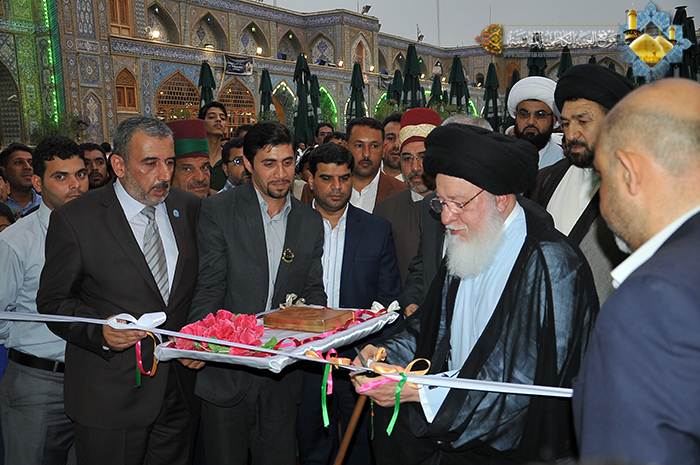 تيمناً بولادة نور الإمامة التاسع الإمام محمد الجواد"عليه السلام" وتزامناً مع فعاليات المؤتمر العلمي السنوي الدولي الخامس الذي سيعقد تحت شعار: (من فكر أئمة البقيع"عليهم السلام" ننهل وبنهجهم نعمل) وضمن اهتمام الأمانة العامة للعتبة الكاظمية المقدسة بتطوير مشروعها الثقافي الإسلامي وتعزيز وتشجيع روح الإبداع الفني، افتتح سماحة آية الله الفقيه السيد "حسين السيد إسماعيل الصدر" برفقة الأمين العام للعتبة الكاظمية المقدسة أ.د "جمال الدباغ" معرض الجوادين الثالث للخط العربي والصور الفوتوغرافية والفنون"عليهما السلام" للفنون المقام في مسقف الصحن الكاظمي الشريف عصر يوم الاربعاء 7 رجب الأصب 1435هـ الموافق 7 أيار 2014م والذي يستمر على مدى خمسة أيام، بحضور أعضاء مجلس الإدارة وعدد من المهتمين بالشأن الثقافي والفني، وشملت أروقته عدة عروض فنية تضمنت جناح للوحات الخط العربي والزخرفة الإسلامية تجسدت فيها جمال وروعة هذا الفن العريق وجناح للصور الفوتوغرافية حيث عبرت لوحاته البانورامية التفاعلية عما يمتلكه هذا الفن من ذوق وروحية عالية وواقعية مؤثرة يعكس فن العمارة الإسلامية والوجه الحضاري لمعالم الصحن الكاظمي الشريف، وجناح للنقش والزخرفة وفن الحفر على المرمر الذي عكس فناً راقياً فأصبح ريع إبداعه صفة تميزت وأنفردت بها العتبة الكاظمية المقدسة.