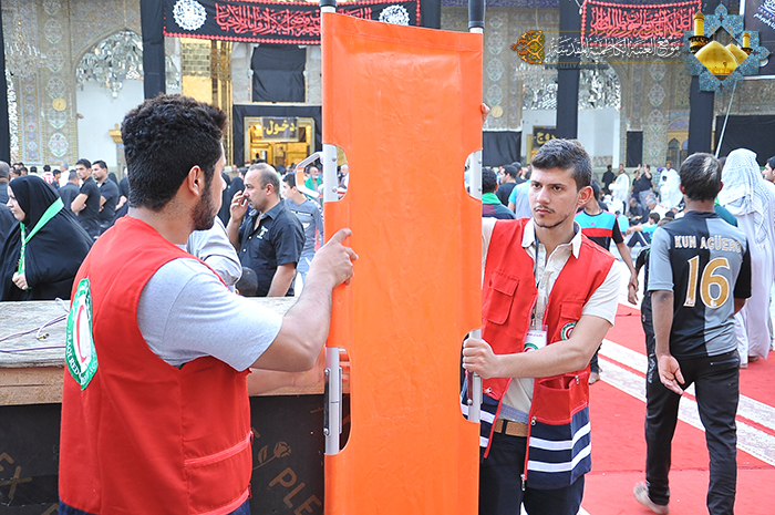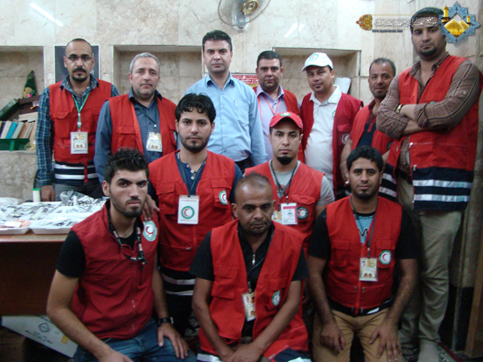 بغية الارتقاء بالخدمات المقدمة لزائري العتبة الكاظمية المقدسة في أيام الزيارة المليونية المباركة لذكرى استشهاد الإمام موسى الكاظم (عليه السلام) باشرت ملاكات جمعية الهلال الأحمر العراقية بأداء مهامها الطبية الصحية المختلفة ونشر مفارزها داخل الصحن الكاظمي الشريف، وعن طبيعة تلك الجهود المباركة كان لنا لقاء مع الدكتور "نبيل نايف عبد الجبار" مدير الهلال الاحمر العراقي فرع بغداد قائلاً: بعد حصول الموافقات الرسمية من الأمانة العامة للعتبة الكاظمية المقدسة خصصت لفريق جمعية الهلال الأحمر غرفتان للرجال داخل الصحن الشريف، وغرفة للنساء في صحن التوسعة، وهيأنا (50) مسعفاً متدرباً لأداء عملهم داخل الصحن الشريف.