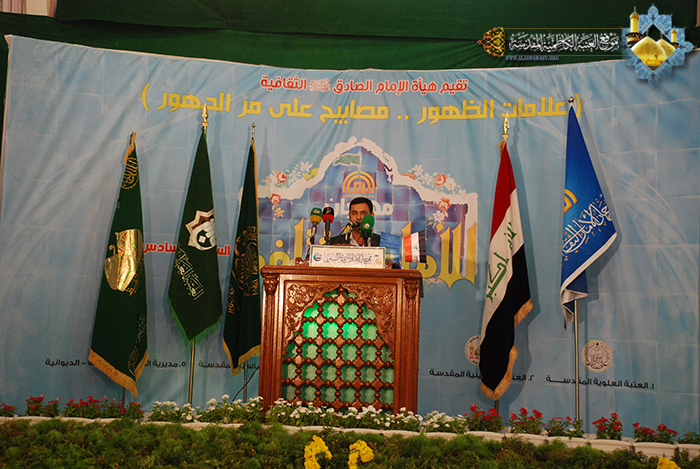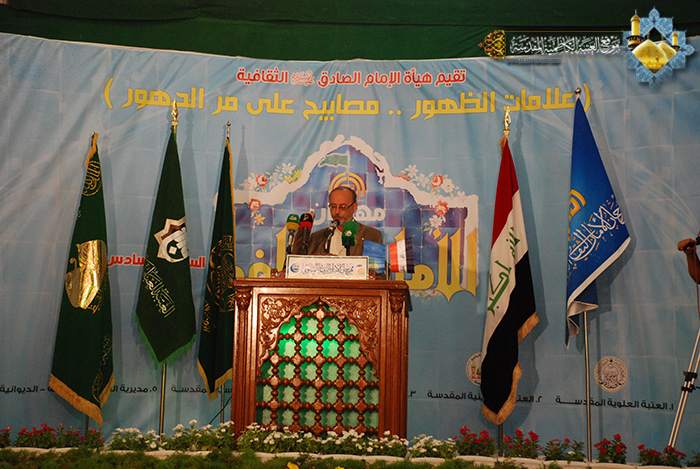 كما ألقى سماحة الشيخ حسين آل ياسين وكيل المرجع الديني الأعلى السيد السيستاني في مدينة الكاظمية " نبارك لأهالي الديوانية عقد مهرجانهم وللسنة السادسة على التوالي ونقول إن بالعقل والنقل نثبت أصل المسألة المهدوية ونجيب على الكثير من التساؤلات ولابد أن نأخذ تعليماتنا من الأئمة "عليهم السلام" ونوجه بها حياتنا ". وأضاف آل ياسين " لابد على المؤمنين التمهيد للإمام المنتظر والاستعداد له والتمسك بالعقل والنقل والقرآن والعترة واتّباع نواب الإمام ومن هذه المدينة الطيبة نحيي إخوتنا في هيأة الإمام الصادق وجهود المشاركين في هذا المهرجان المبارك والتزود بالعلم والمعرفة لمواجهة المشكلات المتعددة والشبهات وستكون بحوث المهرجان منصبة بهذا الاتجاه" .