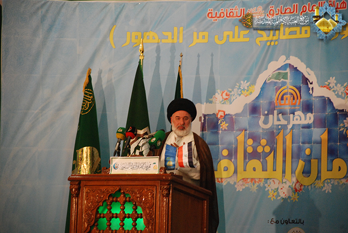 وشهد حفل افتتاح المهرجان كلمات عدة كان من بينها كلمة مؤسسة الإمام الصادق الراعية للمهرجان والتي ألقاها سماحة الشيخ "عقيل علي الزبيدي" بيّن في كلمته: "أنّ القضية المهدوية كانت وما تزال عرضةً للتشويه والتحجيم والتزييف بطرق شتى منذ زمنٍ سبق مولده الميمون، وما ذلك إلّا لأنّ أعداء الإسلام والمتلبّسين بثوبه يُدركون جيداً ما في التزام المجتمعات الدينية بهذه المنظومة العلمية والعملية من رفعة لهذه المجتمعات، لذا ولغيرها من الأسباب تحرّكت ماكنة التشويه والتسطيح على العديد من بقاع الإسلام، تدعمها قوى الاستعمار والاستكبار العالمي، ولم تكن هذه المدينة بمنأى عن محاولات طمس العقيدة المهدوية حتى هذه اللحظة، بل أراد لها المُتقمّصون أن تكون منطلقاً وقلعةً للفكر السلبي الهدّام، وأراد لها المؤمنون أن تكون مناراً وعلَماً يُرفع لصاحب هذا الأمر(عجّل الله فرجه) فكان بمشيئة الله مهرجان الأمان الثقافي السنوي".