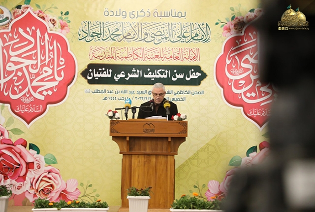 وأضاف: يصبح المسلم مسؤولاً عن الالتزام بالشريعة ومكلّفاً بها إذا بلغ سن التكليف وسن التكليف الشرعي لكم يعني أن الله هيأكم نفسيا وجسدياً الى تحوّل مهم في محطات حياتكم فهو انتقال من الطفولة الى عالم النضوج والمسؤولية.. فها أنتم أشبال أمير المؤمنين وعليكم ان تكونوا عند حسن ظن صاحب العصر والزمان إمامكم المهدي عجل الله تعالى فرجه الشريف بأن تصبحوا على درجة كبيرة من الوعي والإدراك والتمييز بين الحق والباطل وبين الخير والشر.. فبكم يقوى الدين ويزهو الوطن وعليكم يعتمد المستقبل لأنكم رجال الغد الذين سيحددون طعم الحياة ويصنعون مجد الأمة عندما تكون منسجمة مع منهج النبي محمد وآله الأطهار صلوات الله عليهم أجمعين.. فلا تستصغروا شأنكم فعليكم نعوّل وبكم نفتخر أيها الرجال الصغار.. خاصة ونحن نراكم بإذنه تعالى كما جاء في القرآن الكريم (إِنَّهُمْ فِتْيَةٌ آمَنُوا بِرَبِّهِمْ وَزِدْنَاهُمْ هُدًى) زادكم الله هداية وإيمانا.