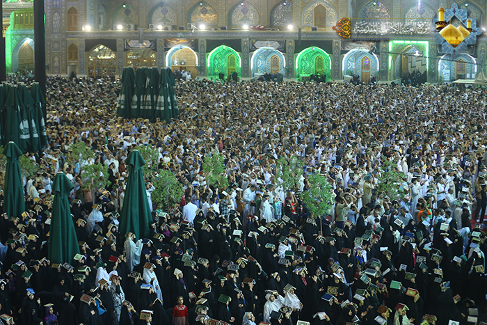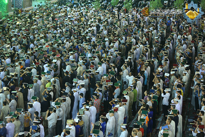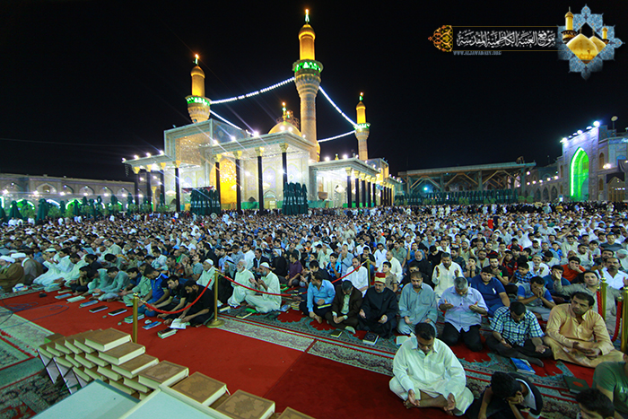 وسط أجواء روحانية تفيض بالإيمان ورجاء القبول شهد الصحن الكاظمي الشريف في الليالي العشر الأخيرة من شهر رمضان المبارك ولا سيما ليالي القدر المباركة التي شرع الله عز وجل فيها أبواب رحمته أمام عباده وهم يتقربون ويتضرعون إليه طلباً للرحمة والمغفرة والعتق من النار، وتحت ظل بركات الإمامين موسى بن جعفر ومحمد الجواد "عليهما السلام" احتشدت الجموع المؤمنة في الليلة الثالثة والعشرين من شهر رمضان المبارك بحضور سماحة الشيخ "حبيب الكاظمي"، والشيخ "عبد الله الدجيلي" ، لتقيم الشعائر والمراسم العبادية الخاصة بليلة القدر العظيمة والتي تم إحياءها بالذكر والاستغفار وتلاوة القرآن الكريم والصلوات مبتهلين إلى الله العلي القدير بالدعاء لصاحب العصر والزمان وتعجيل الفرج وأن يشملهم بوافر رحمته، ويحيي القلوب بالمحبة والأخوة والوئام وأن يحل السلام والأمان على المسلمين في مشارق الأرض ومغاربها .