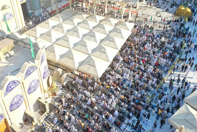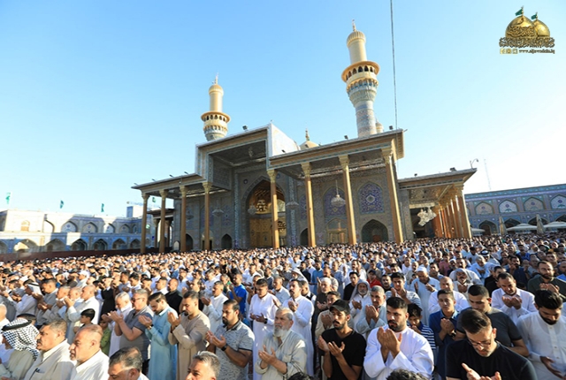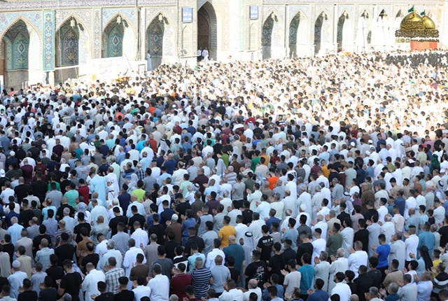 مع إشراقة يوم العاشر من ذي الحجة 1444هـ، الذي تجلّت فيه فيوضات الرحمة الإلهية بأروع صورها في مكان يسعها حباً ويضفي عليها ألقاً، توافدت حشود المؤمنين إلى رياض الإمامة والكرامات، إلى حرم الإمامين الكاظمين الجوادين "عليهما السلام" في مشهد إيماني كبير احتضنه رحاب الصحن الكاظمي الشريف، إذ تراصّت فيه صفوف الجموع الغفيرة من الزائرين الكرام لأداء شعائر صلاة عيد الأضحى المبارك.