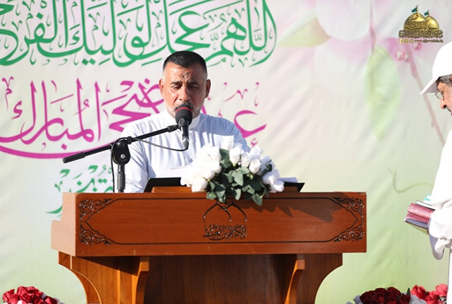 واختتم خطبته بالدعاء بتعجيل فرج مولانا صاحب العصر والزمان الإمام المهدي المنتظر "عجل الله فرجه الشريف" والدعاء للمؤمنين والمؤمنات والمسلمين والمسلمات الأحياء منهم والأموات، ومن دافع عن الدين والمقدسات الذين لبوا فتوى المرجعية الدينية المباركة، والرحمة للشهداء وعوائلهم والشفاء العاجل لجميع الجرحى وأن يجعل بلدنا آمناً، وعيدنا تحقيقاً للغايات المنشودة، ثم تلتها قراءة زيارة سيد الشهداء الإمام الحسين "عليه السلام" من قبل قارئ مآذن الصحن الكاظمي الشريف الشيخ عامر الخفاجي.