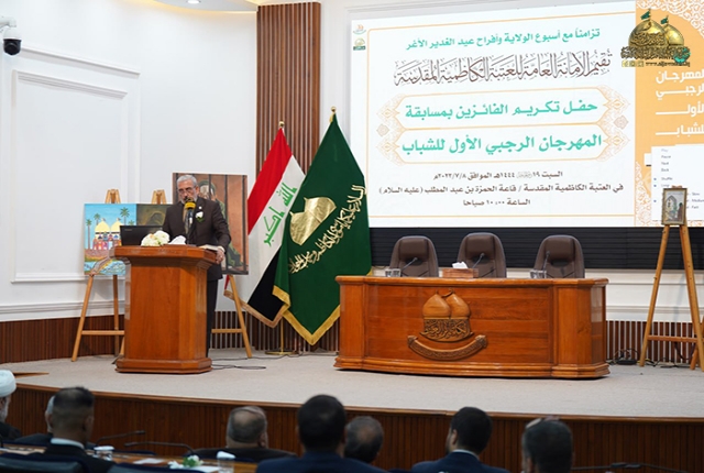ابتهاجاً بيوم التتويج الإلهي لوصي رسول الله "صلّى الله عليه وآله وسلّم" أمير المؤمنين وقائد الغر المحجلين الإمام علي بن أبي طالب "عليه السلام" في غدير خُم، وضمن فعاليات أسبوع الولاية المبارك أقامت الأمانة العامة للعتبة الكاظمية المقدسة حفل تكريم الفائزين في المهرجان الرجبي الأول للشباب في مجال الأدب والفنون وكتابة المقال، والقصة القصيرة، والشعر الفصيح، والرسم.