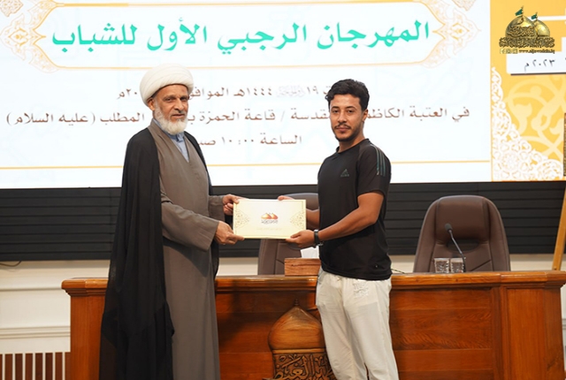 استهل الحفل بتلاوة مباركة من الذكر الحكيم شنّف بها أسماع الحاضرين قارئ العتبة المقدسة الخادم علي ماهر، بعدها كلمة الأمانة العامة للعتبة الكاظمية المقدسة وألقاها عضو مجلس الإدارة المهندس جلال علي محمد جاء فيها قائلاً: (دأبت الامانة العامة للعتبة الكاظمية المقدسة على إحياء مناسبات أهل البيت عليهم السلام للخروج من تلك المناسبات بفائدة روحية تنعكس على المتلقي ومنها توظيف مصادر الإبداع والفنون لنشر فكر النبي المختار وآله الأطهار فكان المهرجان الرجبي الأول للشباب الذي ارتبطت نسخته الاولى بالإمام موسى بن جعفر الكاظم عليه السلام.. لأن الشباب هم الشريحة التي يعول عليها في البناء والتصحيح والارتقاء ومن أهداف هذا المهرجان: استكشاف المواهب الشبابية وتفجير الطاقات وتشجيعها لإحياء فكر أهل البيت عليهم السلام من خلال توظيف الفنون المختلفة والأقلام الواعدة للإسهام في إيصال الصوت الكاظمي عبر الفنون الثقافية والإعلامية المتنوعة وترسيخ المبادئ والقيم التي دعا إليها الإمام موسى بن جعفر عليه السلام حيث انعقد المهرجان تحت شعار (الإمام الكاظم نور أضاء قعر السجون) وقد وصلت أكثر من أربع وخمسين مشاركة شبابية من العراق وخارجه لأقسام المهرجان الستة (المقال والقصة القصيرة والشعر العربي وفن الرسم والصور الفوتوغرافية والأفلام القصيرة).