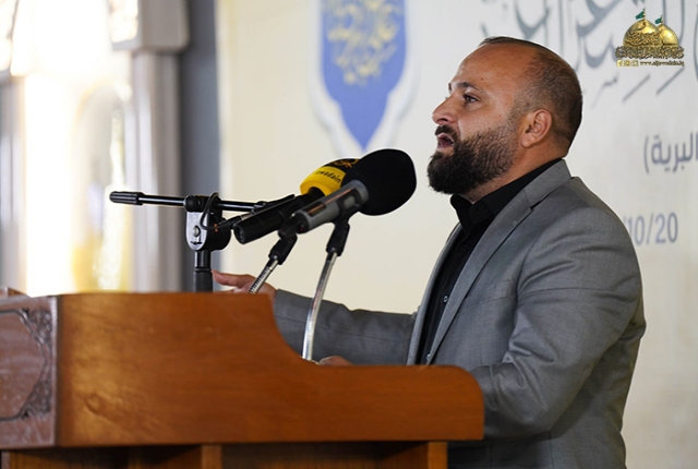 تلاها مشاركة لخادم العتبة العباسية المقدسة الشاعر الأديب علي الصفار الكربلائي بقصيدة رائعة عنوانها (قصائد عسجدية) احتوت أبياتها على تاريخ شعري ليخلد هذا المُلتقى الثقافي قائلاً: