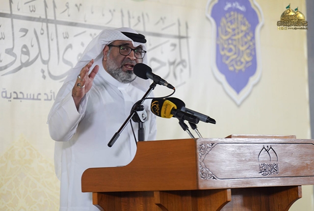 وأضاف فضيلته: غاياتنا في هذا المهرجان هو توظيف فن الشعر العربي في تعريف الناس بأهل البيت "عليهم السلام" عملا بوصية الإمام الرضا "عليه السلام" في إحياء أمرِ محمدٍ وآل محمد قائلا: (رحِمَ اللهُ عبدًا أحيا أمرنا، فقيل له: فكيف يُحيى أمرُكم؟ قال: يتعلّمَ علومَنا ويُعلـِّمُها الناسَ، فإنّ الناسَ لو عَلِموا محاسِنَ كلامِنا لاتّبَعونا) لذلك كان لا بد من تسليط الضوء على شخصية كان امتدادها نابع من جده المصطفى محمد "صلى الله عليه وآله وسلم" شخصية تطرفت جغرافيا في بلاد المسلمين بـ (طوس).. لكنها تمركزت في نفوس الموالين وتربعت على عرش قلوب العاشقين.