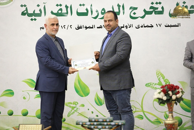 وأضاف: أن الدورات القرآنية فرصة قيمة وعظيمة لنا جميعا ولا يجب أن نفرط بها إذا ما عرفنا أن القرآن الكريم هو أول الثقلين ومن ثم الثقل الثاني عترة النبي المصطفى "صلى الله عليه وآله وسلم" ولا بد من التمسك بهما لضمان الهداية وعدم الضلال لهذا ينبغي علينا تعلم القرآن الكريم وفهم آياته والتقرب إلى الله عز وجل بالمداومة على تلاوة كتابه وتطبيق آياته وتعاليمه في حياتنا.. لذلك أوصانا الإمام جعفر الصّادق "عليه السلام" قائلا: (يَنْبغي للمؤمن أنْ لا يموت حتّى يَتعَلّم القرآنَ، أو يكونَ في تعلّمه)).