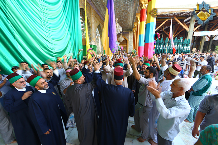 تجديداً للعهد والولاء لسيد البلغاء والمتكلمين أسد الله الغالب الإمام علي بن أبي طالب"عليه السلام" نظم موكب خَدَمَة العتبة الكاظمية المقدسة مسيرة ولائية انطلقت من حسينية آل الصدر متجهة نحو المشهد الكاظمي وصولاً إلى مرقد الإمامين الهمامين الكاظمين "عليهما السلام"، صدحت بها حناجر المشاركين بالهتافات التي عبرت عن الولاء المطلق للإمام علي بن أبي طالب "عليه السلام"، و تحفهم رايات العهد الولاء حاملين الشموع ابتهاجاً بعيد الولاية الكبرى والإمامة العظمى.