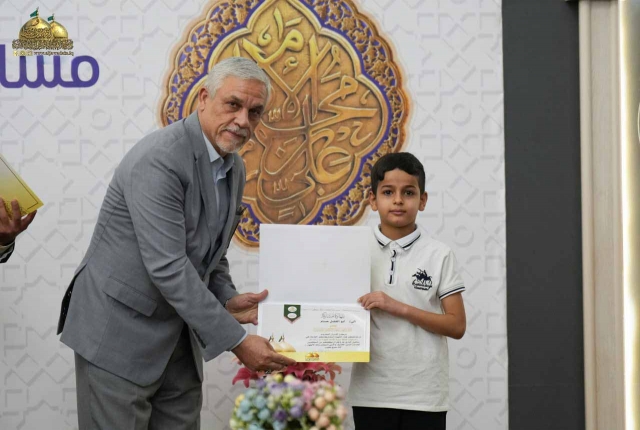 برعاية مباركة من قبل الأمين العام للعتبة الكاظمية المقدسة، خادم الإمامين الكاظمين الجوادين الدكتور حيدر حسن الشمّري، كرّمت الأمانة العامة للعتبة الكاظمية المقدسة الفائزين والمشاركين من البنين والبنات في مسابقة حفظ سيرة باب المراد إمامنا محمد بن علي الجواد "عليه السلام" المباركة التي أقامها مركز القرآن الكريم بالعتبة المقدسة في حفل شهده رواق سيدنا عبد الله بن عبد المطلب "عليه السلام".