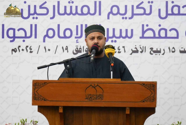 بعدها شهد حفل التكريم مشاركة الخادم المنشد علي ماهر بمجموعة من القصائد التي ترنّمت بحق الإمام محمد بن علي الجواد "عليه السلام"، واختتم الحفل بتوزيع الشهادات والهدايا على الطلبة المشاركين.