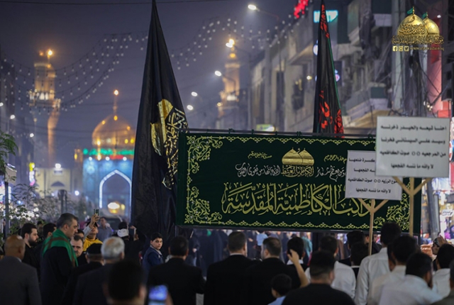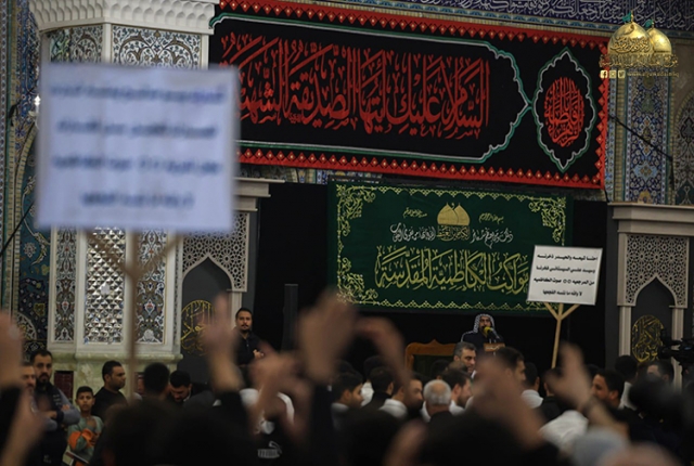 وشارك تلك الجموع المعزّية موكب خدّام الإمامين الجوادين "عليهما السلام"، بعدها تجمهرت المواكب المعزّية في رواق سيدنا عبد الله بن عبد المطلب "عليه السلام" لتختتم مسيرتها بمجلس تأبيني مستذكرين خلاله مآثرها "عليها السلام" وأبعاد مسيرتها الإنسانية والإيمانية والرسالية والاجتماعية، ودورها الكبير في حياة الأمة وتضحياتها بالغالي والنفيس وجهادها المرير، ومواقفها الصلبة في الحفاظ على مفهوم المسيرة المحمدية، ثم ابتهل المعزّون إلى الله العليّ القدير بالدعاء بتعجيل فرج مولانا القائم من آل محمد "عجل الله فرجه الشريف"، وأن يرحم شهداءنا، وأن يعم الأمن والأمان على بلدنا العزيز وشعبنا الأبي الصابر.