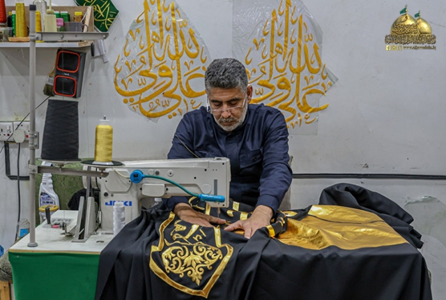 حين تصافح الإبرة خيوط الولاء، وتنسج أنامل الإخلاص رايات العزاء، في أبهى صور الوفاء، تتجلى روح الخدمة المخلصة في الاستعداد لإحياء الذكرى الأليمة لاستشهاد إمام الصبر موسى بن جعفر الكاظم "عليه السلام"، لذا انجزت وحدة الخياطة والتطريز التابعة لقسم الشؤون الهندسية في العتبة الكاظمية المقدسة أعمال صناعة اللافتات الكبيرة والكلمات النورانية التي ستوضع على أعمدة الطارمات وأسوار الصحن الكاظمي الشريف في صورة تعكس الهيبة والقدسية لهذا المقام الطاهر في أيام العزاء والحِداد.