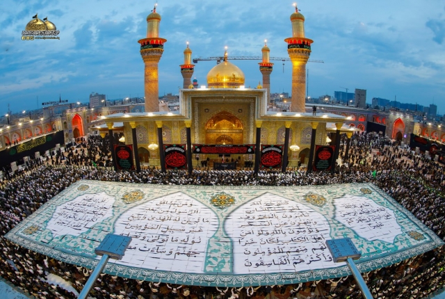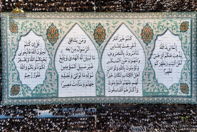 في مسيرة تجمّع فيها بنو عامر بفئاتهم، شيبا وشباباً وتشكيل عرض ملحمي يعبّر عن ارتباطهم العميق بمبادئ الإمام الكاظم "عليه السلام" ورسالته الخالدة حيث نظموا مسيرتهم من قلب مدينة الكاظمية المقدسة وهي تتوشح بالسواد، ليحيوا هذه المناسبة وسط أجواء قدسية رافعين فوق رؤوسهم لوحة الإبداع التي نقشت عليها أربع آيات من القرآن الكريم بدأت بقوله تعالى: بسم الله الرحمن الرحيم (إِنَّمَا يُرِيدُ اللَّهُ لِيُذْهِبَ عَنكُمُ الرِّجْسَ أَهْلَ الْبَيْتِ وَيُطَهِّرَكُمْ تَطْهِيرًا)، وقوله (كُنتُمْ خَيْرَ أُمَّةٍ أُخْرِجَتْ لِلنَّاسِ تَأْمُرُونَ بِالْمَعْرُوفِ وَتَنْهَوْنَ عَنِ الْمُنكَرِ وَتُؤْمِنُونَ بِاللَّهِ ۗ وَلَوْ آمَنَ أَهْلُ الْكِتَابِ لَكَانَ خَيْرًا لَّهُم ۚ مِّنْهُمُ الْمُؤْمِنُونَ وَأَكْثَرُهُمُ الْفَاسِقُونَ).