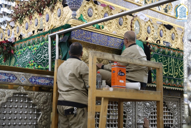 وتجدر الإشارة أن هذه الأعمال تنفذ بصورة دورية وموسمية من قبل فرق متخصصة، وتتم بعناية فائقة من خلال استخدام أنواع خاصة من المنظفات التي لا تؤثر على مكونات الشباك، وتُضفي طابعاً جمالياً عليه واظهار هذه الأجزاء من المرقد الطاهر بأبهى حُلّة.