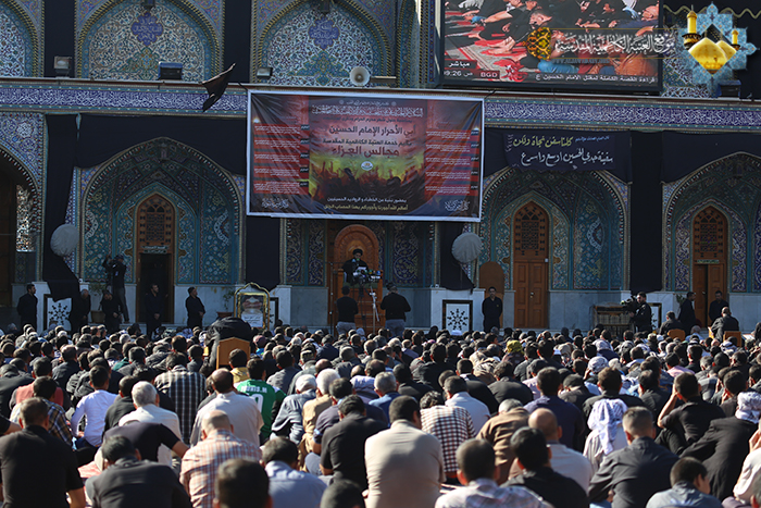 شهد الصحن الكاظمي الشريف أجواءً إيمانية ملأها الحزن والأسى استذكاراً لفاجعة الطف الأليمة التي سبي بها أهل بيت النبوة باستشهاد سيد شباب الجنة الإمام الحسين وأهل بيته الأطهار وأصحابه الأبرار"عليهم السلام" في يوم عاشوراء يوم الشهادة والتضحية والفداء الذي سُطرت فيها أروع الصور لإعلاء كلمة لا إله إلا الله محمد رسول الله بوجه الظلم والطغيان وإرساء القيم الإنسانية, وبهذه المصاب الجلل أقامت الأمانة العامة للعتبة الكاظمية المقدسة مراسم خاصة ليوم العاشر من محرم الحرام بحضور الأمين العام للعتبة الكاظمية المقدسة أ.د جمال الدباغ وأعضاء مجلس الإدارة وسماحة الشيخ حسين آل ياسين وكيل المرجعية الدينية العليا فضلاً عن حضور عدد من الشخصيات الدينية والاجتماعية وجمع غفير من زائري الإمامين الجوادين "عليهما السلام" للمشاركة في مراسم العزاء، استهلت بقراءة تلاوة أيٍ من الذكر الحكيم شنف بها قارئ العتبة المقدسة السيد عبد الكريم قاسم أسماع الحاضرين بعدها ارتقى المنبر الخطيب الحسيني سماحة السيد جعفر المشعشعي ليقرأ المقتل الحسيني، وسرد القصة الكاملة لواقعة الطف واستشهاد أبي عبد الله الحسين "عليه السلام"، حينها ضج الحاضرون بالنحيب والبكاء حزناً وتأسياً وولاءً لأئمة أهل البيت "عليهم السلام ", بعدها توجه الحاضرون بالدعاء إلى المجاهدين المرابطين في الثغور وساحات القتال المدافعين عن بلدنا ومقدساتنا بأن يثبت أقدامهم ويسدد خطاهم ويكللها بالنصر المؤزر . وأعقب هذه المراسم بعد صلاتي الظهرين قراءة زيارة الإمام الحسين بصوت القارئ عامر الخفاجي .