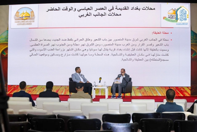 وفي سياق الفعاليات المرافقة، أقام مركز الكاظمية لإحياء التراث ندوة ثقافية تأريخية، قدّم خلالها الخادم سمير أموري ورقة بحثية بعنوان: (محلات بغداد القديمة في العصر العباسي والوقت الحاضر)، استعرض خلالها معالمها وأزقتها التراثية وما تكتنزه تلك الحاضرة التاريخية والثقافية والإنسانية التي تعدّ جزءاً حيوياً نابضاً في جسد الحضارة العراقية.