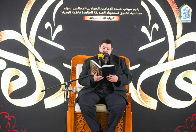 لتجديد عهد الولاء والوفاء للمحدثة العليمة السيدة فاطمة الزهراء "عليها السلام"، وتجسيداً لقول إمامنا جعفر الصادق "عليه السلام": (أحيوا أمرنا رحم الله من أحيا أمرنا)، إذ أقام موكب خدّام الإمامين الجوادين "عليهما السلام" مجالس العزاء والتأبين الحُسيني، في رواق سيدنا عبد الله بن عبد المطلب "عليه السلام"، حيث استضاف المجلس سماحة السيد علي الجابري ليتحف الحضور بمحاضراته الدينية متتبّع خلالها المآثر والقيم الإنسانية والرسالية لسيدة الطهر والقداسة فاطمة الزهراء "عليه السلام"، ومسيرتها الكفيلة بإيصال صوت الحق والعدل الإلهي ومسؤوليتها القيادية التي استطاعت من خلالها أن تصون رسالة أبيها النبي الأكرم محمد "صلّى الله عليه وآله وسلّم".