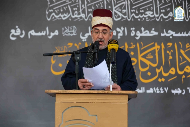 وأوضح: إنَّ الأمانةَ العامّةَ للعتبةِ الكاظميّةِ المقدّسةِ وهي تُشاركُكم هذه المناسبةَ العزيزةَ، تدعو الموالينَ جميعًا إلى استلهامِ الدروسِ والعِبَرِ من سيرةِ الإمامِ الكاظمِ "عليهِ السلام" وتَرجَمتِها سلوكًا عمليًّا في حياتِنا اليوميّة من خلال التمسّكِ بالأخلاقِ وتعزيزِ روحِ التعايشِ وخدمةِ المجتمعِ، والوقوفِ صفًّا واحدًا بوجهِ الفسادِ والانحرافِ ونُصرةِ الحقِّ).
