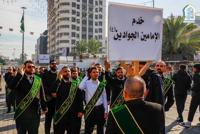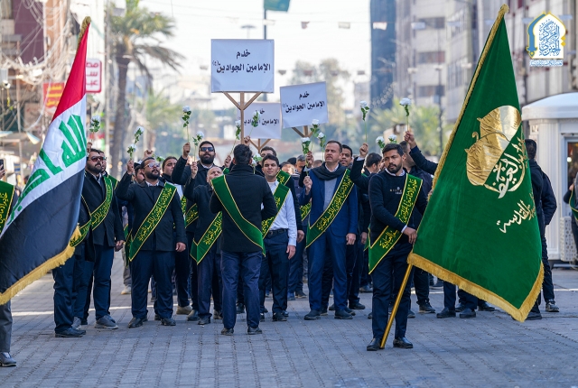 وشهدت المسيرة مشاركة خدّام العتبة المقدسة وجمع من الزائرين الكرام، صدحت خلالها الحناجر بالهتافات والردّات الولائية التي عبّرت عن عمق الارتباط والولاء للإمامين الكاظمين الجوادين "عليهما السلام"، مجددةً العهد على المضيّ بنهجهم المبارك، واستلهام قيمهم في خدمة الدين والمجتمع.