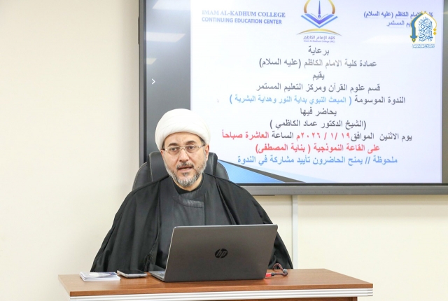 العتبة الكاظمية المقدسة تشارك في الندوة الفكرية لكلية الإمام الكاظم "عليه السلام" لمناسبة يوم المبعث النبوي الشريف