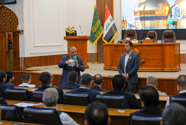 حيث دار الحديث في فُلك شرف الخدمة في العتبة المقدسة، وما يمثله هذا المكان الطاهر من مسؤولية عظيمة تستوجب الإخلاص والالتزام في أداء الواجبات، مؤكداً في حديثه قائلاً: (يتجدد عهدنا إن شاء الله تعالى باللقاء معكم ونحن في رحاب الكاظمين الجوادين "عليهما السلام" للتهيؤ والاستعداد لتنفيذ الخطة الخدمية الخاصة لاستقبال الزائرين الوافدين في شهر رمضان المبارك، فمن الواضح أن نفحات المولى عزّ وجل على الإنسان لا تأتي بصورة مستمرة لذا يجب اغتنام هذه النِعم، فوجودنا في هذا المكان المقدس من حيث العقيدة هو نفحة إلهية، تستوجب التشرّف بها والاستظلال ببركاتها).
