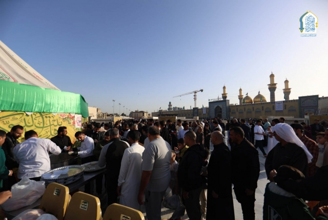 موكب خدّام العتبة الكاظمية المقدسة يقدّم الضيافة للزائرين احتفاءً بعيد الفطر المبارك
