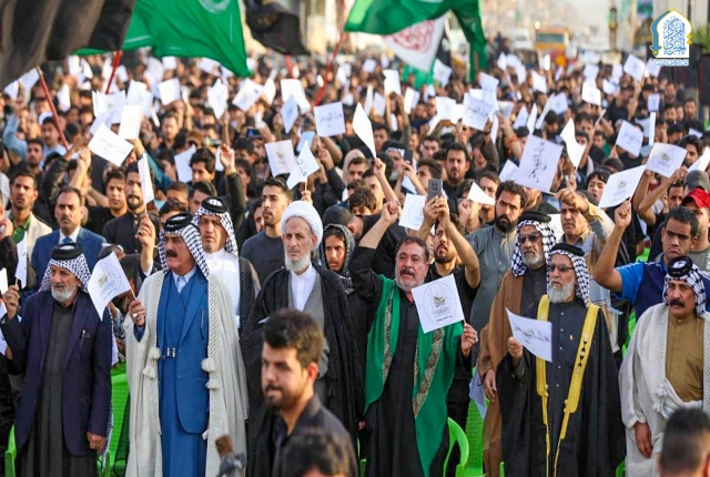 وقد اتسمت الوقفة بأجواء إيمانية مفعمة بالحزن والأسى، تخللتها كلمات وفعاليات جسّدت صدق الانتماء والولاء لأهل البيت "عليهم السلام"، مؤكدةً أهمية وحدة الصف وصون المقدسات والدفاع عنها.
