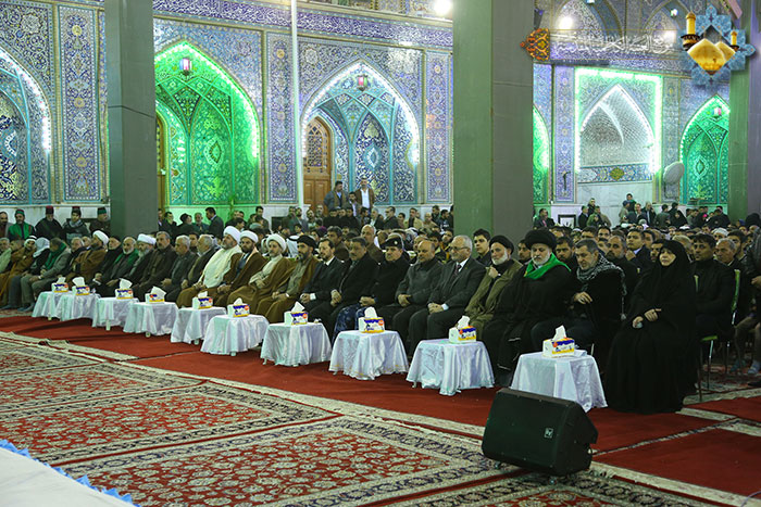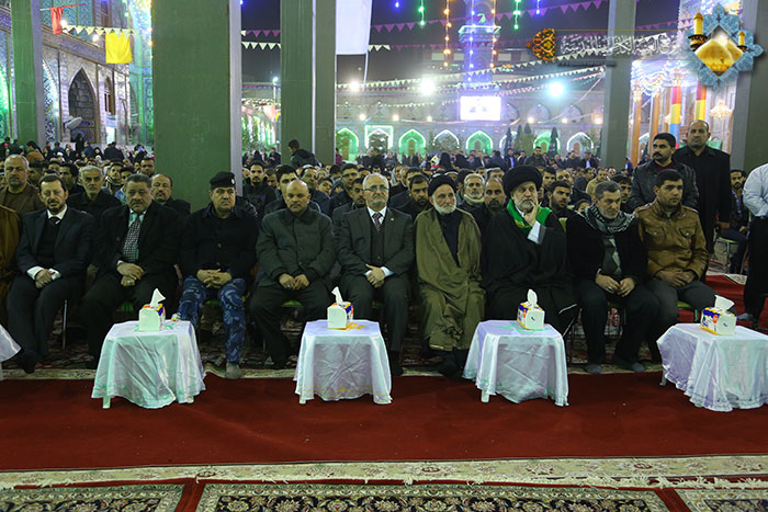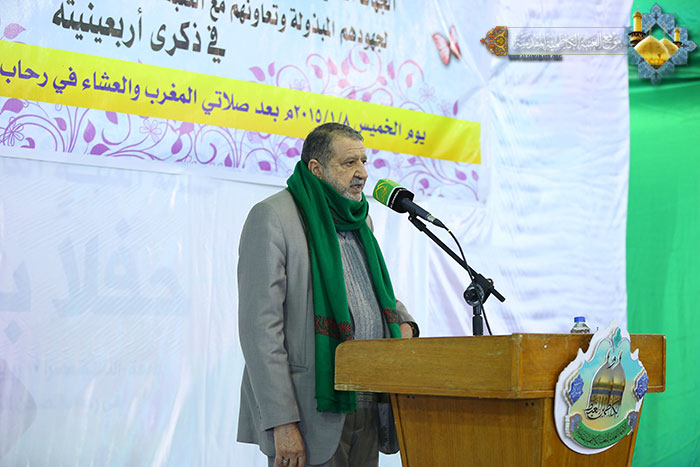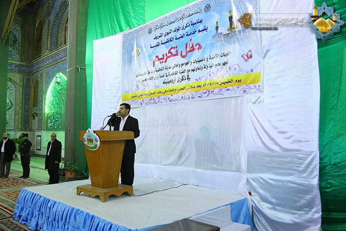 استهل الحفل بتلاوة معطرة من الذكر الحكيم للقارئ الحاج "همام عدنان " تلتها كلمة الأمانة العامة للعتبة الكاظمية المقدسة والقاها أمينها العام أ . د "جمال الدباغ " بيّن فيها قائلاً: " إنَّ هذهِ الأعدادَ الكبيرةَ من الزائرينَ لمرقدِ الإمامِ الحسينِ "عليه السلام" والمراقدِ المقدسةِ الأُخرى، تتطلبُ جهوداً كبيرةً جداً لتلائِمَ الخدماتِ الجليلةَ التي ينبغي أنْ تُقَدَّمَ للزائرين، فقد وفَّقَكُمُ اللهُ تعالى لخدمةِ مَنْ تتشرَّفُ الملائكَةُ بخدمتِهم، فقدَّمْتُم من الخدماتِ الجليلةِ في هذا العام، أثناءَ زيارةِ الأربعينِ ما تَقُرُّ به العينُ أمامَ النبيِّ "صلى الله عليه وآله وسلم" والأئمةِ "عليهم السلام"، فآثرتُمْ بأنفسِكُم وأموالِكُم وجاهِكُم وغيرِ ذلكَ في سبيلِ تعظيمِ شعائرِ اللهِ تعالى، وكما تعاهَدْنا معكُمْ في العامِ الماضي من خلالِ حفلِنا السنوي على التعاضُدِ والتماسُكِ من أجلِ خدمةِ الزائرينَ الوافدينَ إلى مدينتِنا المقدسة، ولا يفوتُني ذِكْرَ ما قَدَّمَتْهُ المؤسساتُ الأمنيةُ لحمايةِ أولئكَ الزائرين، وما قدَّمَهُ إخوتُنا المجاهدونَ في الحشدِ الشعبي، فكانوا عيوناً ساهرةً تحافظُ على ديمومَةِ الزيارةِ لأكثرَ من أسبوعين، وكذلكَ المؤسساتُ الخدميةُ وغيرُها، فَبِاسْمِ جميعِ خَدَمَةِ العتبةِ الكاظميةِ المقدسةِ أتقدَّمُ لكم بأحَرِّ التهاني والتبريكاتِ لتوفيقِكُمْ لهذهِ الخدمةِ العظيمة .." بعدها القى شاعر أهل البيت السيد "نبيل أبو العيس" قصيدة بهذه المناسبة ومنها هذه الأبيات: