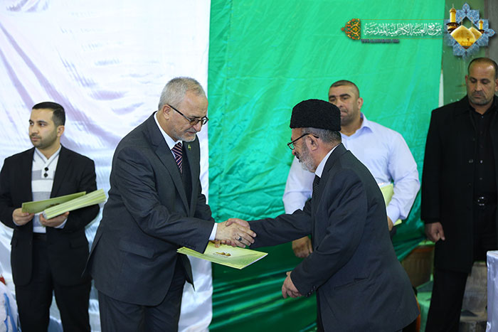 تزامناً مع الذكرى العطرة لمولد الرسول الأكرم "صلى الله عليه وآله" وحفيده وناشر علومه الإمام جعفر الصادق "عليه السلام"، أقامت الأمانة العامة للعتبة الكاظمية المقدسة مساء يوم الخميس 8/1/2015م حفلاً مباركاً لتكريم الجهات الأمنية والحسينات والجوامع وأهالي مدينة الكاظمية والمناطق القريبة منها، احتفاءً بجهودهم المباركة ودورهم الفاعل وتعاونهم مع الأمانة العامة للعتبة الكاظمية المقدسة لنيل شرف خدمة زائري الإمامين الكاظمين "عليهما السلام"، وذلك من خلال فتح بيوتهم ومنازلهم لإيواء جموع الوافدين من داخل العراق وخارجه وتقديم الخدمات المتميزة لهم أثناء الزيارة المليونية لأربعينية الإمام الحسين "عليه السلام"، بحضور الأمين العام للعتبة الكاظمية المقدسة أ. د "جمال الدباغ" وأعضاء مجلس الإدارة وعدد من الشخصيات الدينية والسياسية والاجتماعية وشيوخ ووجهاء وفضلاء مدينة الكاظمية المقدسة.
