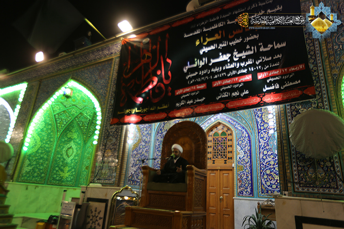 ضمن السعي الدوؤب والشعور بالمسؤولية تجاه المناسبات الدينية لأهل بيت النبوة ومعدن الرسالة ومختلف الملائكة, تواصل الأمانة العامة للعتبة الكاظمية المقدسة نشاطاتها في إحياء ذكرى استشهاد بضعة الرسول الهادي فاطمة الزهراء"عليها السلام", حيث أعدت منهاجاً حافلاً لإقامة مجالس العزاء الحسيني في رحاب الصحن الكاظمي الشريف ابتداءً من يوم الخميس5/3/2015م ويستمر لمدة ثلاثة أيام بحضور سماحة الشيخ "جعفر الوائلي". وتناول خلال محاضراته الدينية القيّمة السيرة المباركة للسيدة الزهراء وبيّن مآثرها العظيمة والمناقبها الربانية وتطرق إلى بعض المفاهيم الأخلاقية التي يحتاجها مجتمعنا في هذه المرحلة الحرجة، وحث المؤمنين على ضرورة التحلِّي بأخلاقها "عليها السلام" وأن يتخذوا من سيرتها الوضاءة منهجاً عملياً في بناء الذات والمجتمع. كما شارك في هذا البرنامج العزائي نخبة من رواديد العتبة الكاظمية المقدسة بقراءة قصائد المراثي التي جددوا خلالها العهد والوفاء لسيدة نساء العالمين "عليها السلام".