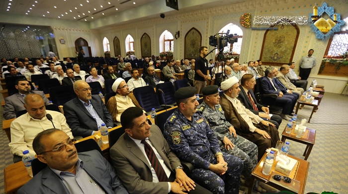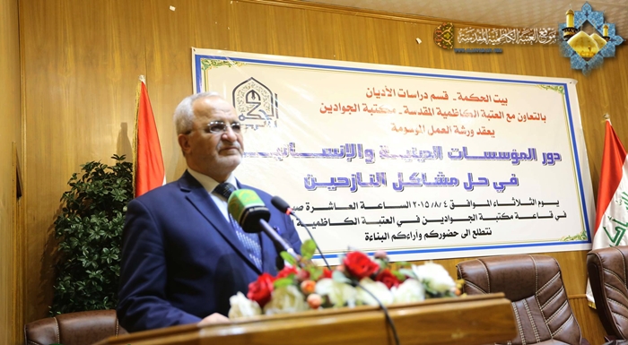 حرصت الأمانة العامة للعتبة الكاظمية المقدسة على رعايتها للعديد من الندوات والمؤتمرات لأجل إثراء الساحة الثقافية والعلمية والمعرفية والتي تسعى من خلالها أن تساهم في عملية التغيير والتطوير النوعي لبناء المجمتع العراقي، لذا استضافت قاعة سيد الشهداء الحمزة بن عبد المطلب "عليه السلام" في رحاب الصحن الكاظمي الشريف صباح يوم الثلاثاء 4/8/2015م ورشة العمل التي أقامها بيت الحكمة/ قسم دراسات الأديان بالتعاون مع العتبة الكاظمية المقدسة/ مكتبة الجوادين العامة تحت شعار: " دور المرجعيات الدينية والسياسية في دعم النازحين " بحضور الأمين العام للعتبة الكاظمية المقدسة أ . د جمال عبد الرسول الدباغ وعدد الشخصيات الأكاديمية والاجتماعية وخَدَمَة الإمامين الجوادين، استهلت الندوة بتلاوة معطرة من الذكر الحكيم شنف بها قارئ العتبة السيد عبد الكريم قاسم أسماع الحاضرين بعدها ارتقى المنصة الأمين العام للعتبة الكاظمية أ . د جمال الدباغ وألقى كلمة بهذه المناسبة بيّن فيها الدور الإنساني للعتبات المقدسة ورعايتها للنازحين، وتقديم خدماتها الجليلة للمجتمع، مشيراً إلى التحدي الكبير الذي فرض على الدولة العراقية بعد احتلال الموصل، حيث كانت غير قادرة على تحمل أعباء النازحين بجانب الأعباء العسكرية، فهنا أخذت العتبات المقدسة وعلى وجه الخصوص النجف الأشرف وكربلاء المقدسة دورها في احتضان ورعاية النازحين، وبذلت جل اهتمامها وسخرت جميع إمكاناتها لاحتواء هذه الأزمة، والكلّ على علم إنها مسؤولية كبيرة حيث وفرت خلالها السكن والطعام والدواء والخدمات الأخرى.