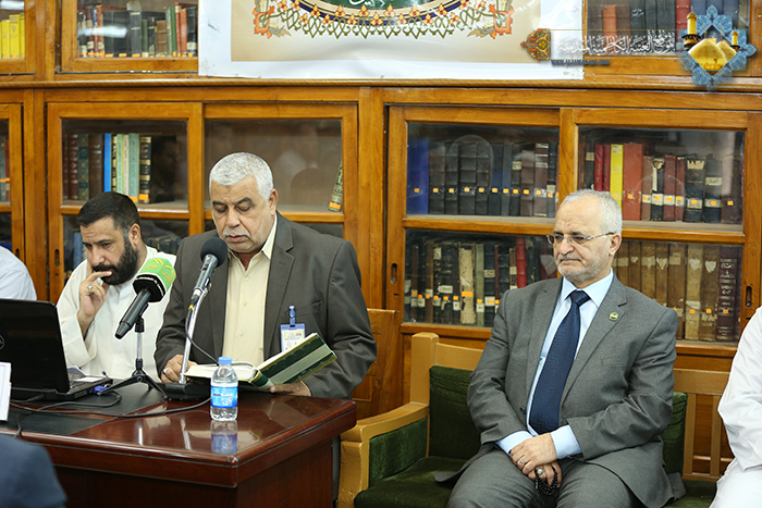 استهلت الندوة بتلاوة معطرة من آيات الذكر الحكيم شنّف بها قارئ العتبة السيد عبد الكريم قاسم أسماع الحاضرينَّ بعدها قدم الباحث د. عبد الأمير مطلك فنجان البديري بحثه حول الإعجاز الحرفي في سورة (ق )، فسلط الضوء فيها على القيمة الوزنية والعددية للحروف الهجائية في هذه السورة المباركة.