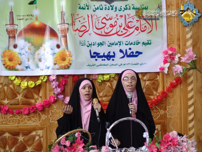 وسط الأفراح الغامرة وبأجواء تملئها البهجة والسرور بمولد ثامن الأنوار المحمدية, وشمس شموس الدوحة الهاشمية الإمام علي بن موسى الرضا "عليه السلام", أقامت خادمات العتبة الكاظمية المقدسة حفلاً رضوياً بهيجاً في طارمة صحن قريش, إذ تنوعت الفقرات والفعاليات التي تخللت الحفل فقد استهلت بتلاوة معطرة من آيات الذكر الحكيم, تلتها قراءة دعاء العهد المبارك تجديداً للبيعة مع إمام زماننا المنتظر المهدي "عجل الله فرجه الشريف", بعدها تمت قراءة زيارة الإمام الرضا "عليه السلام" سائلين المولى عز وجل أن يرزقنا زيارته في الدنيا وشفاعته في الآخرة, وتضمن البرنامج محاضرة فقهية في ما يخص أحكام الصلاة. واشتمل الحفل على إقامة مسابقة لإضافة البهجة والفائدة على أجوائه لما حوته من معلومات دينية وفقهية متنوعة, ووزعت الجوائز على الزائرات الفائزات من بركات الإمامين الجوادين "عليهما السلام"، وكانت هناك مشاركة لطالبات الدورة القرآنية حيث قَدَّمنَ خلالها الأناشيد والموشحات الدينية.